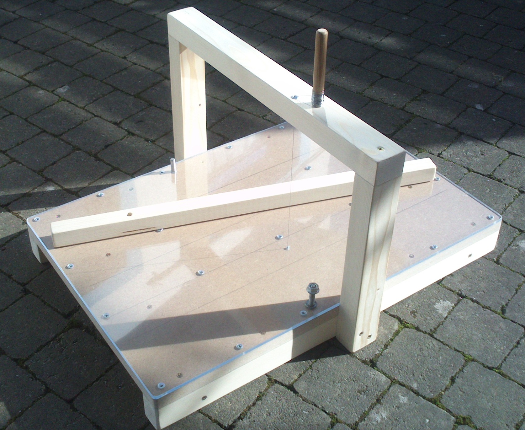 Coupe-savon en sapin avec surface de coupe en plexiglass.